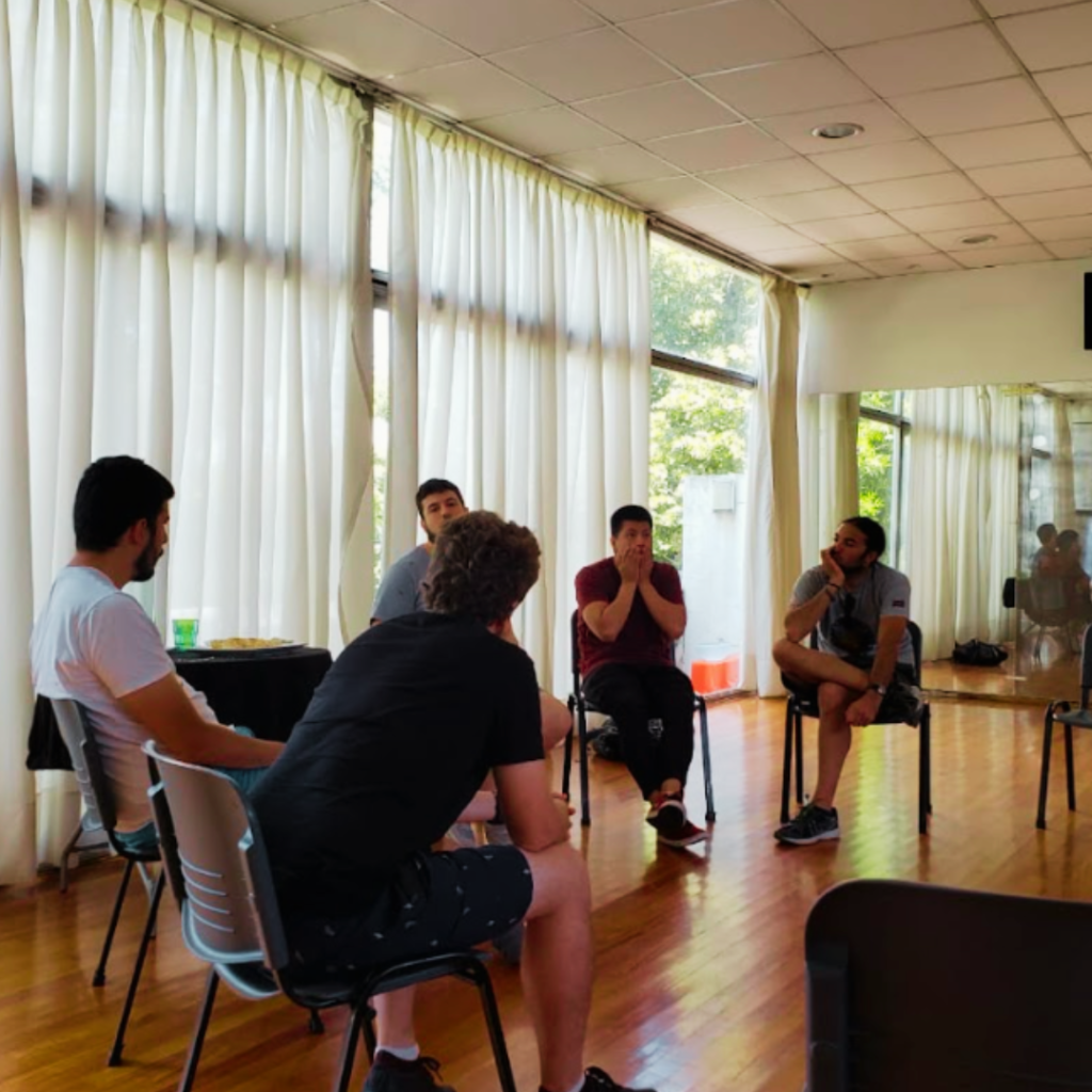 Muchos papás cuentan que se sientes solos a la hora de paternar. Por eso coordino estos espacios exclusivos para papás varones donde nos juntamos una vez por semana a conversar sobre nosotros y nuestra paternidad. Algunos de los temas sobre los que hablamos son crianza, pareja, sexualidad, relaciones sociales, tiempo libre, autocuidado, etc. A veces se propone alguna dinámica desde la coordinación, mientras que en otras oportunidades el encuentro gira en torno a alguna situación que fue sucediendo en la semana de los participantes. Los encuentros son virtuales para que puedan sumarse padres desde cualquier parte del mundo.